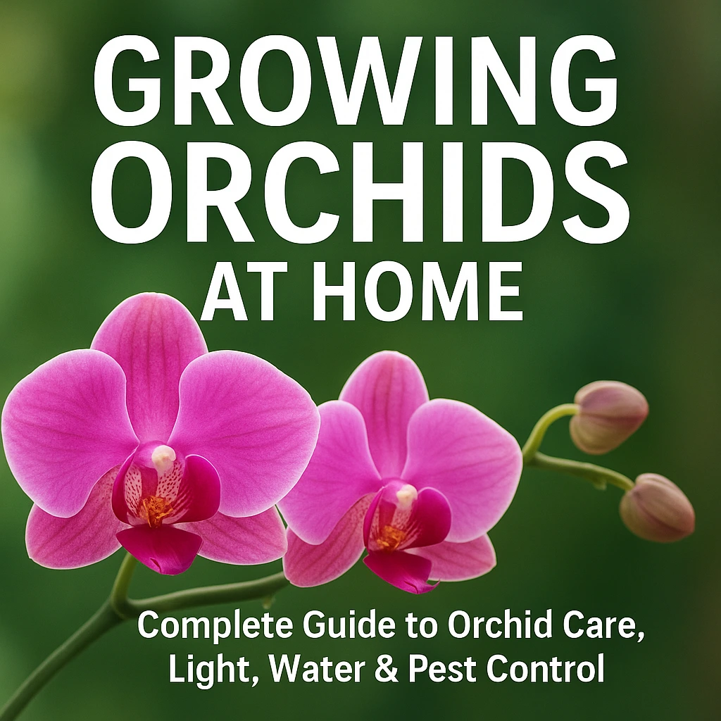 Keywords: growing orchids at home, orchid care guide, indoor orchids, how to grow orchids, orchid watering tips, orchid light requirements, pest control for orchids, easy-to-grow orchids, home gardening e-book, orchid care for beginners